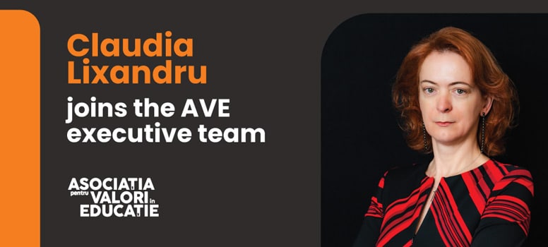 The Association for Values in Education (AVE) is a non-profit organization whose main objective is to bring the Romanian education system into the top 10 in Europe by 2035. AVE wants to support the transformation of the Romanian education system into one that promotes respect, honesty, team spirit and responsibility. You can keep up to date with AVE’s actions by following our LinkedIn, Facebook and Instagram pages.